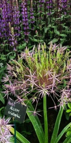 Commonly known as the Drumstick Allium or Giant Chive, the flowers are elliptical in shape and appear from mid to late summer, following on from the main season varieties. The foliage is similar to that of chives and remains green until the end of flowering.